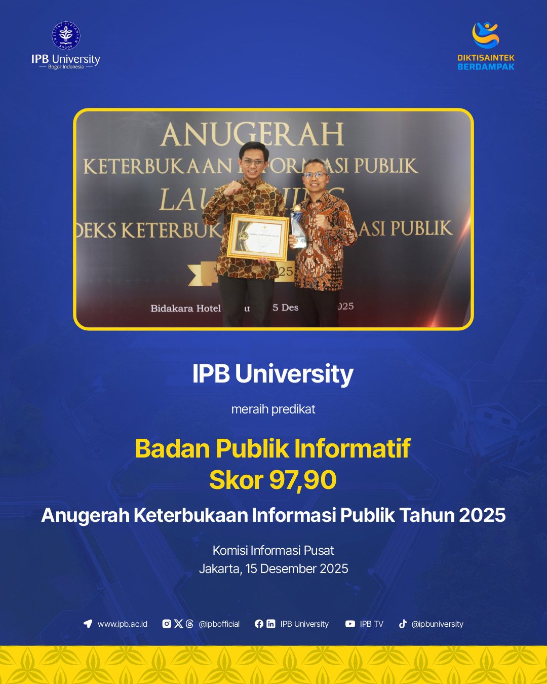 IPB TV facilitates communication/dissemination of research results and community empowerment from all units within IPB University, for the community and other stakeholders.
