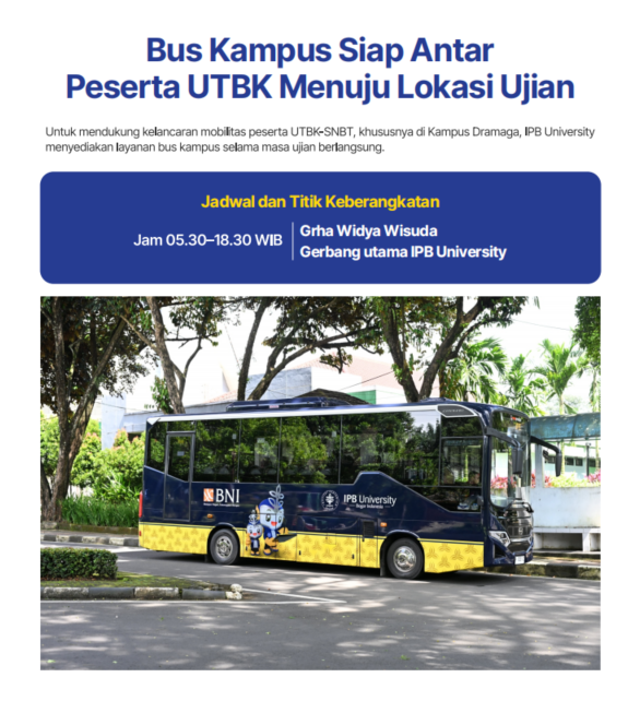 Untuk mendukung kelancaran mobilitas peserta UTBK-SNBT, khususnya di Kampus Dramaga, IPB University menyediakan layanan bus kampus selama masa ujian berlangsung.